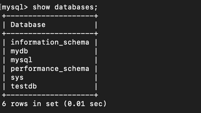 아까 생성한 database가 남아있는 것을 확인할 수 있다.