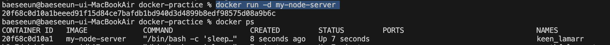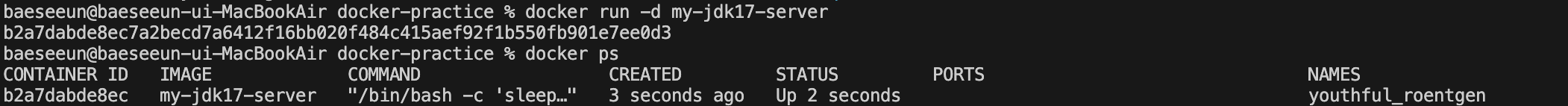 => 이미지에서 컨테이너가 실행될 때 컨테이너가 내부적으로 해야될 작업들이 종료되면 컨테이너는 자동적으로 종료된다.