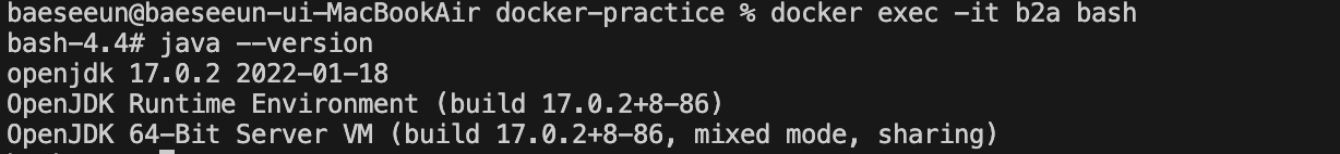 7. 컨테이너 안에 진짜 jdk가 깔려있는지 확인하고 싶어
