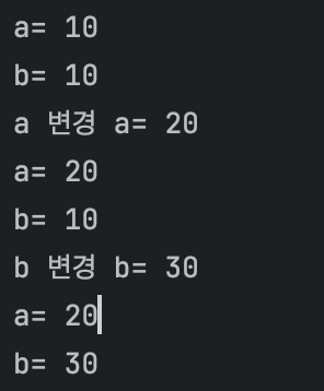 System.out.println("dataB 값 변경 dataB.value = 30"); //