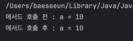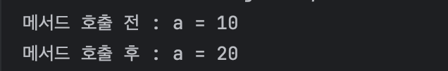 System.out.println("메서드 호출 후 : a = " + a);