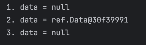 data에 null을 할당했다. 따라서 앞서 생성한 Data 인스턴스는 아무도 참조하지 않는다.