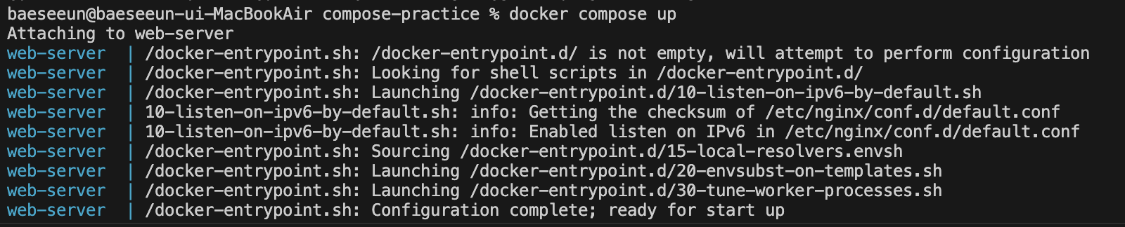 2. 작성한 compose 파일을 바탕으로 실행시켜 보자.