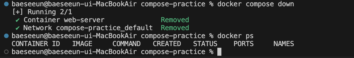 6. compose로 실행시킨 컨테이너를 내려보자.