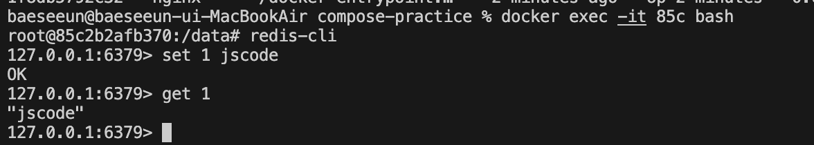 레디스 명령어를 입력해보면 정상적으로 동작하는 것을 확인할 수 있다.