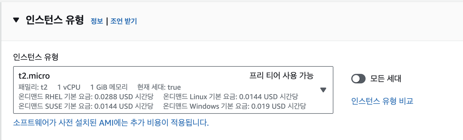 인스턴스 유형은 컴퓨터의 사양을 의미한다. 사양이 좋을 수록 무거운 프로그램을 돌리기 좋다.