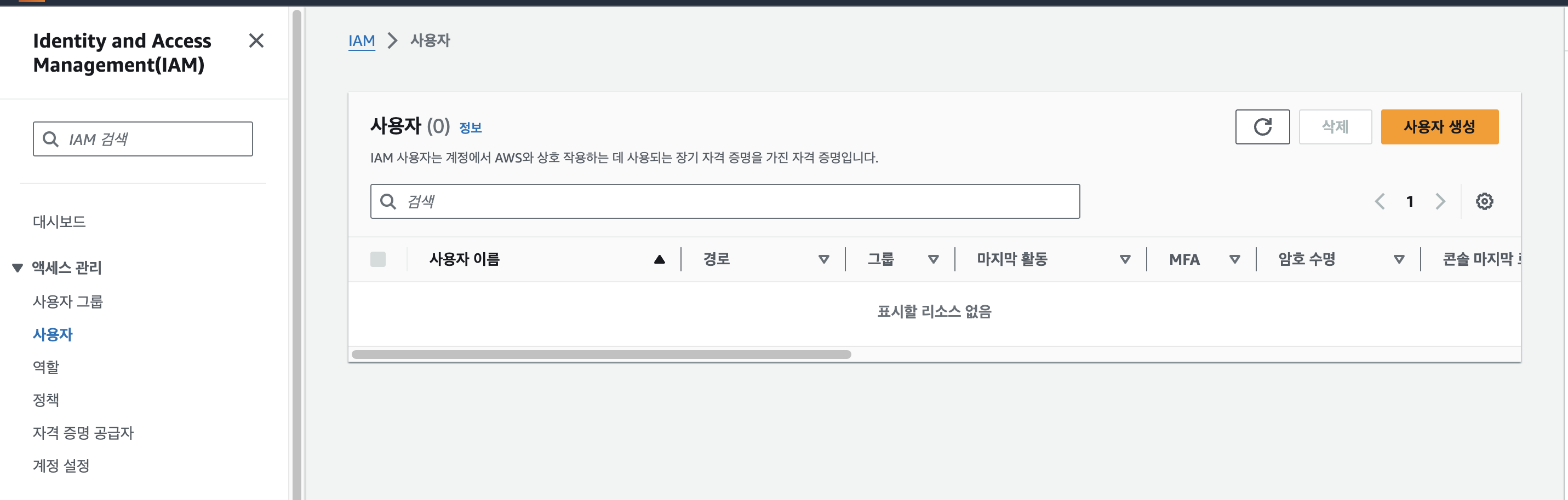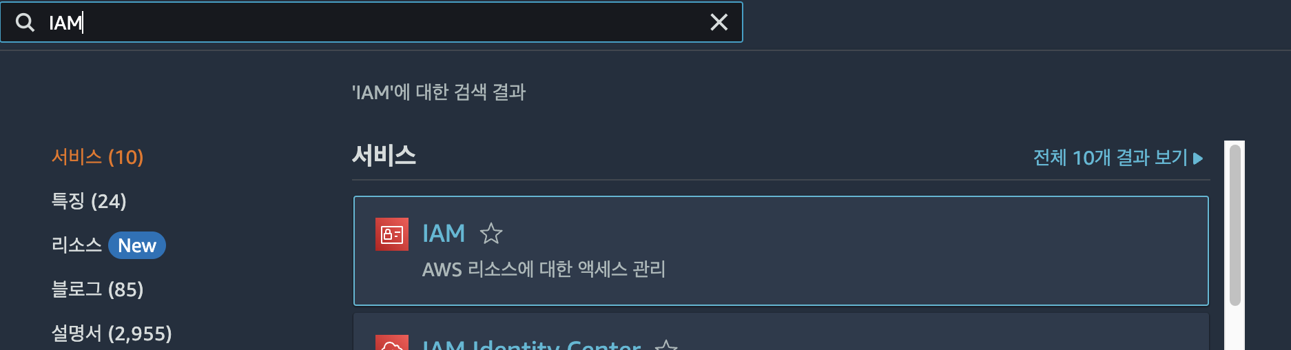 3. AWS 를 새 페이지에서 접속해서, IAM 을 검색한다.