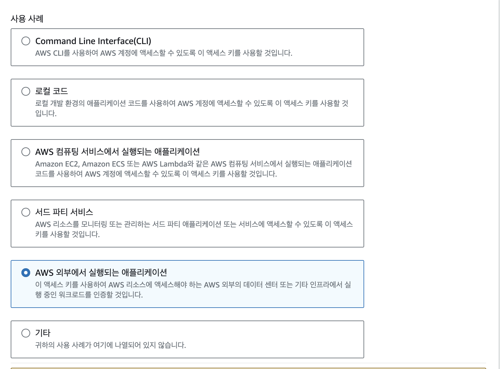 AWS 외부에서 실행되는 애플리케이션 선택 후 다음