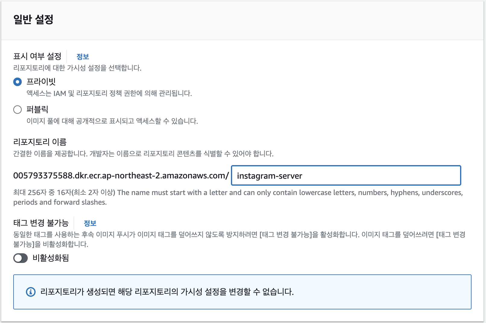 * 하나의 레파지토리에는 하나의 이미지를 생성한다.