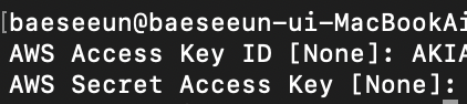 Default region name 에는 ap-northeast-2를 입력해준다. 나머지는 엔터를 눌러주자.