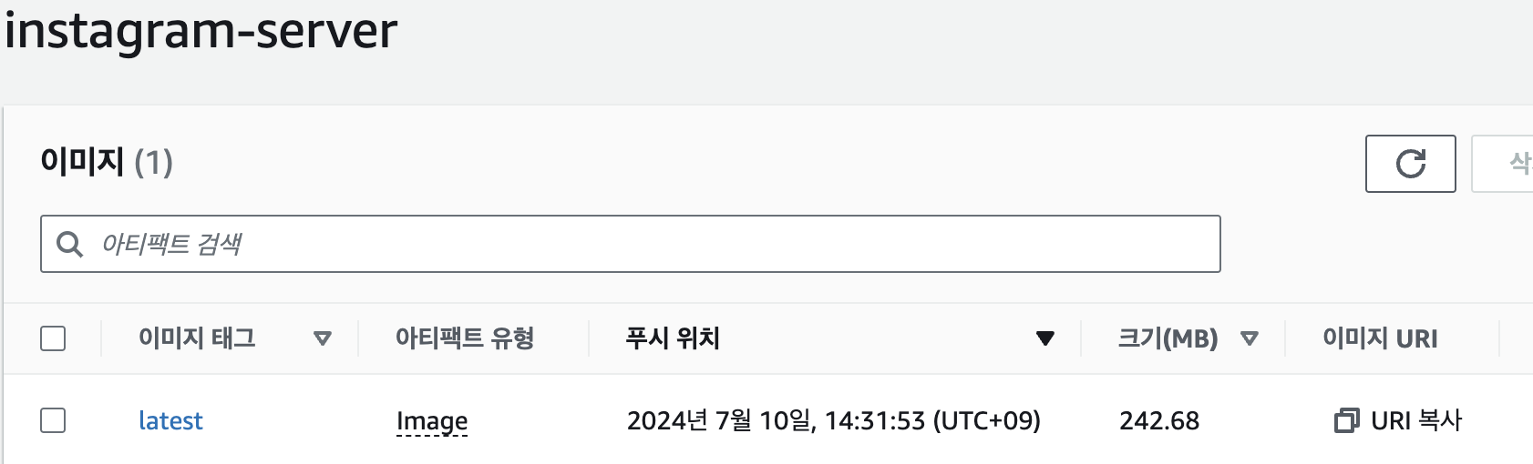 4. 이미지를 다운받아보자. ECR에서 레포지토리를 클릭하면 URI가 있다.