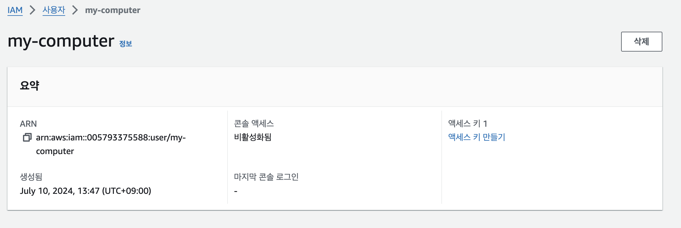 7. 액세스 키, 비밀 액세스 키를 확인할 수 있다.