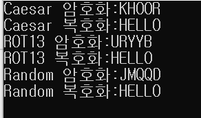 Console.WriteLine("Caesar 암호화:" + encryptStr);