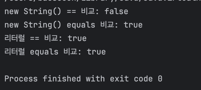 System.out.println("new String() equals 비교: " + str1.equals(str2));