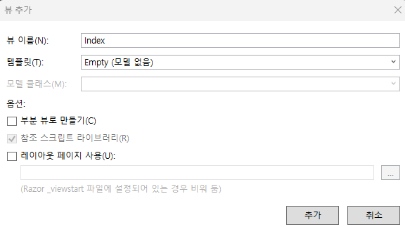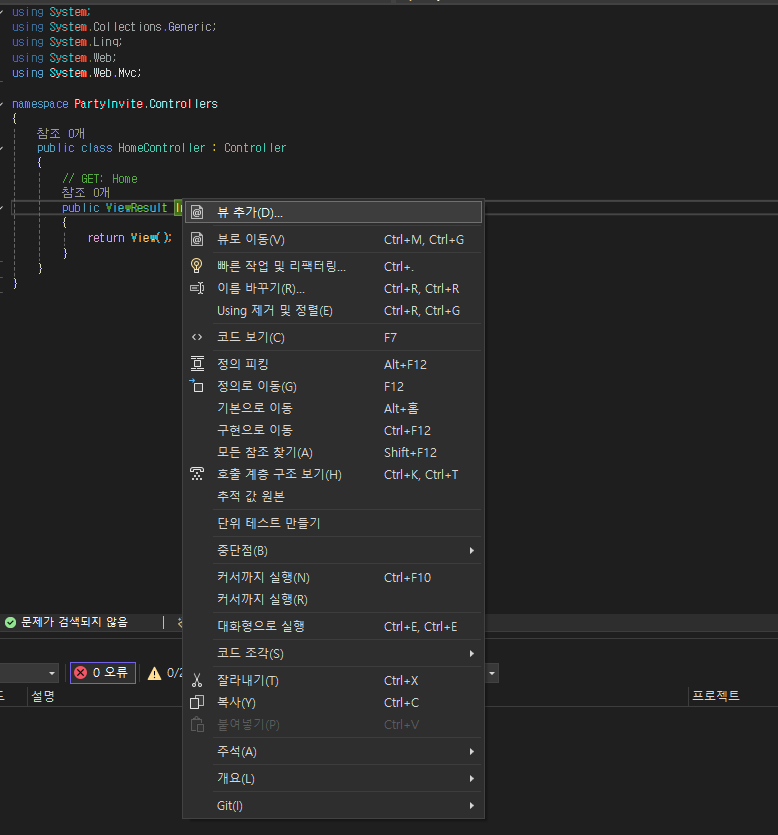 - HomeController.cs에서 Index 메서드 위에서 마우스 우클릭.