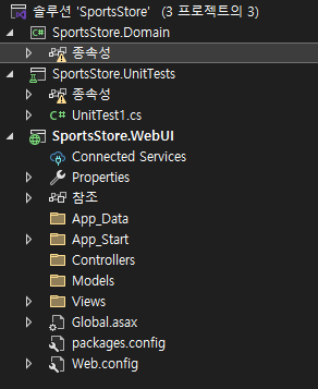 - 프로젝트 탭에서 SportsStore.WebUI를 선택 후 확인.