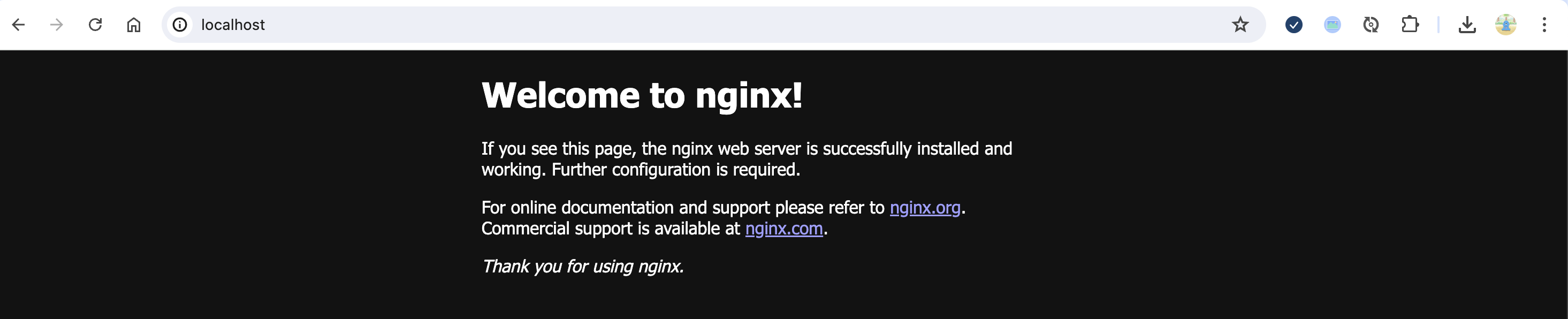 => nginx가 정상적으로 설치되어 실행된 것을 확인할 수 있다.